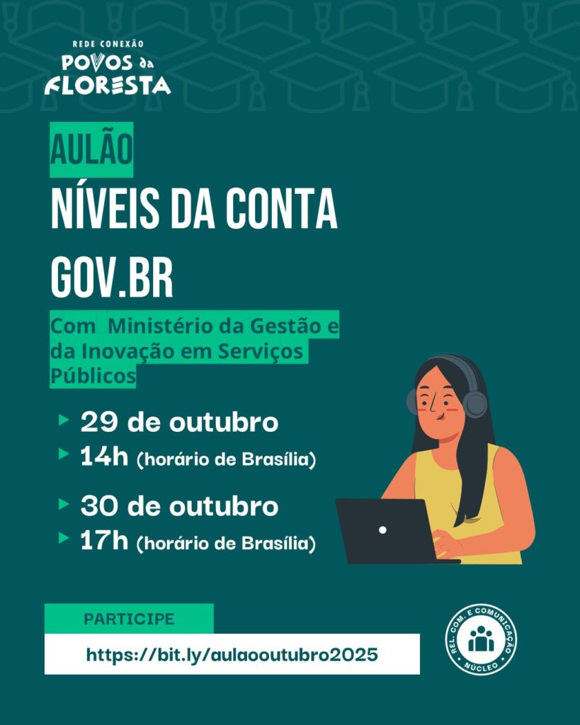 Nos dias 29 e 30 de outubro teremos mais um encontro para aprofundar o acesso digital das comunidades: Níveis da conta Gov.br! 🔐