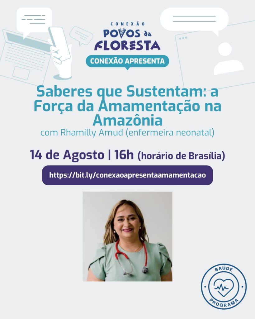 A convidada desta edição é Rhamilly Amud, mestre em Enfermagem no Contexto Amazônico, enfermeira neonatal e consultora em aleitamento, com mais de 15 anos de atuação junto a famílias e povos tradicionais. A atividade acontece no dia 14 de agosto (quinta-feira), às 16h (horário de Brasília).